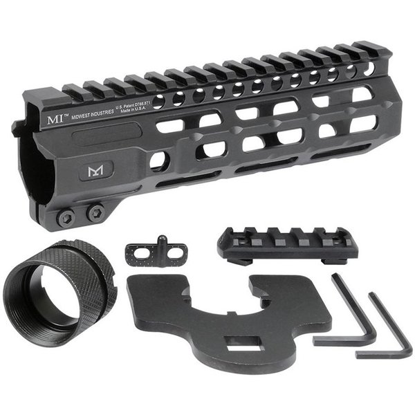 Helt tillverkad i USA, inkluderar Midwest Industries Combat M-LOK Rail Handguard en värmebehandlad barrel nut och en installationsnyckel. Handtaget har sju rader av M-LOK-kompatibla fästpunkter och en kontinuerlig Picatinny rail på toppen för optik och andra tillbehör. Dessutom erbjuder handtaget två separata snabbkopplingsslingsocklar med en anti-rotationsdesign.