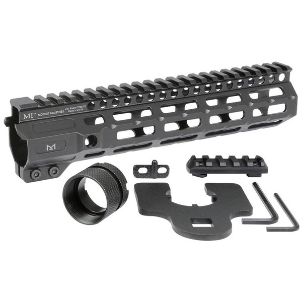 Helt tillverkad i USA, inkluderar Midwest Industries Combat M-LOK Rail Handguard en värmebehandlad barrel nut och en installationsnyckel. Handguarden har sju rader av M-LOK-kompatibla monteringspunkter. Toppdelen av handguarden ger en kontinuerlig Picatinny rail för optik och andra tillbehör, och handguarden erbjuder även två separata snabbkopplingsslingor med en anti-rotationsdesign.