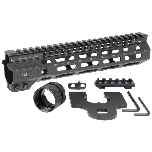 Helt tillverkad i USA, inkluderar Midwest Industries Combat M-LOK Rail Handguard en värmebehandlad pipmuttern och en installationsnyckel. Handtaget har sju rader av M-LOK-kompatibla fästpunkter. Ovanpå handtaget finns en kontinuerlig Picatinny-skena för optik och andra tillbehör, och handtaget erbjuder även två separata snabbutlösningsfästen för remmar som har en anti-rotation design.