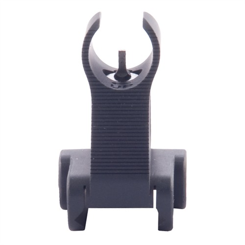Rail-mounted, fixed, same-plane front sight works with any AR-style flip-up rear sight as a back-up for a scope or red dot. Distinctive HK-style “globe”-shaped ears aid in fast target acquisition, while the serrated, angled ramp eliminates glare. Elevation adjustable in ½ MOA increments; positive-locking detent ensures settings change only when you want them to. Base with sturdy side clamp and steel crossbolt attaches to any Picatinny railed forend or gas block that is the same height as the receiver rail. Installs with a standard flathead screwdriver—no protruding knobs or levers to catch on brush, clothing, or other equipment.