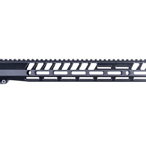 AR-15 Full Top Rail MLOK Handguard (Inkluderar pipmuttern och hårdvara). Handguardet är tillverkat av 6061-T6 aluminium och anodiserat svart enligt mil-spec MIL-A-8625F, TYPE III, CLASS 2. Pipmuttern är av 4140 PH stål.