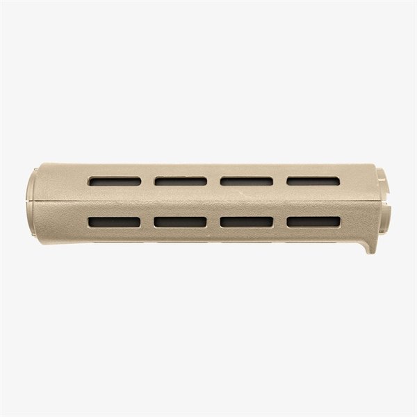 Two piece drop-in M-LOK® Carbine or Mid-Length handguards designed to replace the standard clamshell design. Slim diameter, increased ergonomics, built in handstop, and the utility of six sides of M-LOK® attachment points. FEATURES Durable composite construction. Built-in stamped aluminum heat shield. Fits both round and triangle handguard caps. Available in all standard colors. SPECS Weight: 3.90 oz. Carbine, 5 oz Mid-Length Length: 7.00 in. Carbine, 9.00 in. Mid-Length Width: 1.75 in. for both Carbine and Mid-Length