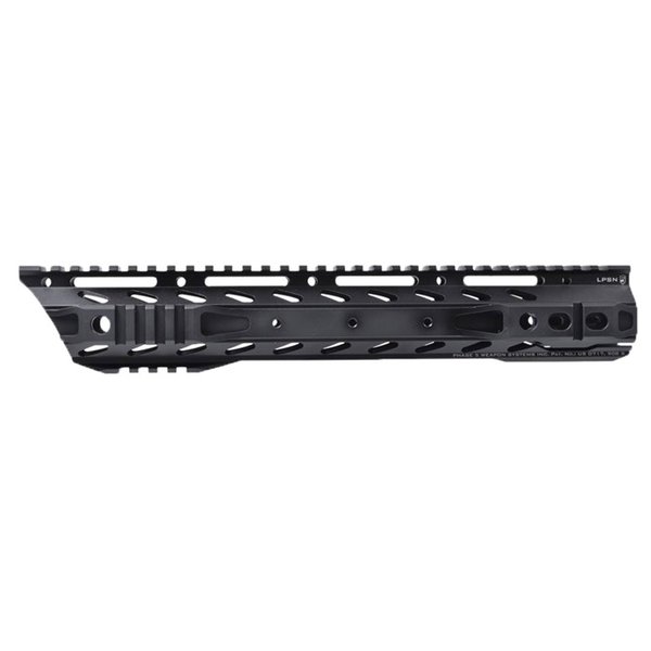 The Lo-Pro Slope Nose Free Float Quad Rail from Phase 5 gives your AR-15 a radical, futuristic look - but the looks are its least unique feature. The Lo-Pro is all about maximizing accessory mounting real estate, while minimizing weight and bulk. Hence, the front end that extends the top Picatinny rail well forward but slopes backward to the underside of the handguard to keep the "Slope Nose" as trim and maneuverable as possible. The Lo-Pro Slope Nose handguard comes in a Picatinny configuration with a full-length top Picatinny rail, plus partial Picatinny rail segments up front at the 3, 6 and 9 o'clock positions. The M-LOK® model has short Picatinny rail segments at the front and rear on top and rows of M-LOK® slots on the sides and bottom for an even more compact profile, yet not at the expense of accessory mounting freedom. Both models have pairs of side-positioned pushbutton QD sling swivel sockets at the front and rear. An overall "Coke bottle" contour means the part of the handguard your hand holds has an unusually small circumference that's easy to grasp. Machined 6061 T6 aluminum Matte black Type III hardcoat anodized finish Approx. 2.25" O.D., 1.35" I.D. Thoroughly de-burred for a smooth surface that's easy on the hand Non-rotating QD sling swivel sockets at front & rear sides Easy to install For use on AR-15 upper receivers only Available in a variety of lengths Picatinny railed & M-LOK® slot models to choose from Compactness and lots of accessory attachment points are only the part of the Lo-Pro Slope Nose Free Float Quad Rail's strengths. It also has Phase 5's ultra-secure True-fit™ mounting system that clamps around the entire circumference of the (included) proprietary barrel nut with six (6) evenly spaces attachment screws. Other mounting systems distort or pinch the handguard at the bottom, leading to excess stress on the 'guard or the barrel nut that can cause premature failure. Phase 5's True-fit system is extremely strong and secure! You can remove and reinstall your Lo-Pro Slope Nose handguard as often as you need to without risk of wearing it out.
