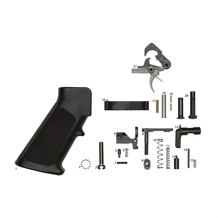 817953020852 Komplett Lower Parts Kit med ACT Trigger. Detta kit innehåller: Bolt Catch, Bolt Catch Plunger, Bolt Catch Spring, Bolt Catch Roll Pin, Mag Release, Mag Release Button, Mag Release Spring, Buffer Retainer Spring, Safety, Buffer Retainer, Safety Detent Spring, Safety Detent, Trigger Guard, Trigger Guard Roll Pin, Takedown Detent Springs, Takedown Detents, Takedown Pins, ACT Trigger. Kitet kan köpas med eller utan grepp!Restorder. Skickas när den finns i lager. Leveranstid ca 4-12 veckor från centrallagret.