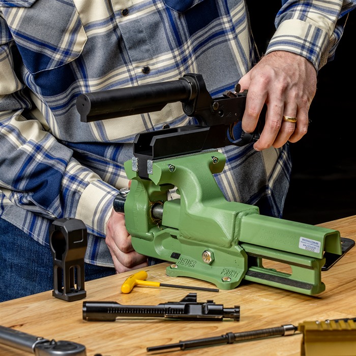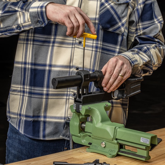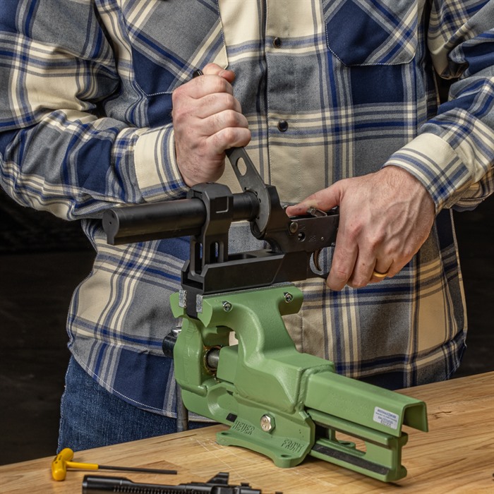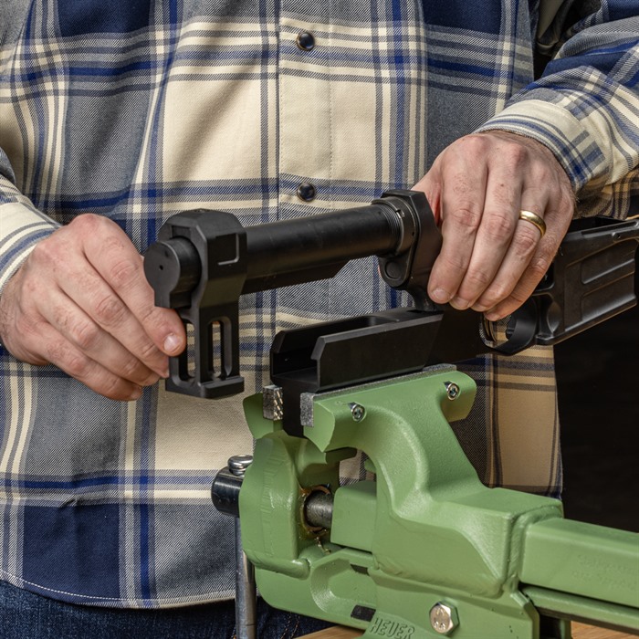 Håll din buffer tube rak med vår AR-15 Lower Receiver Buffer Tube Vise Fixture!