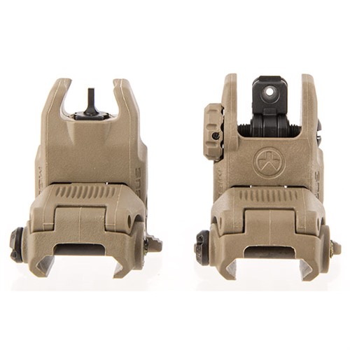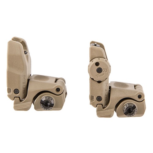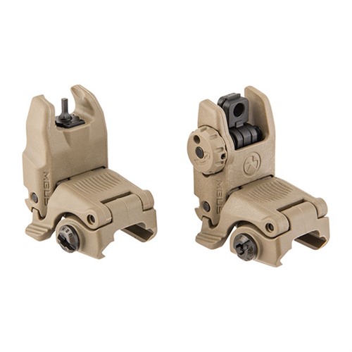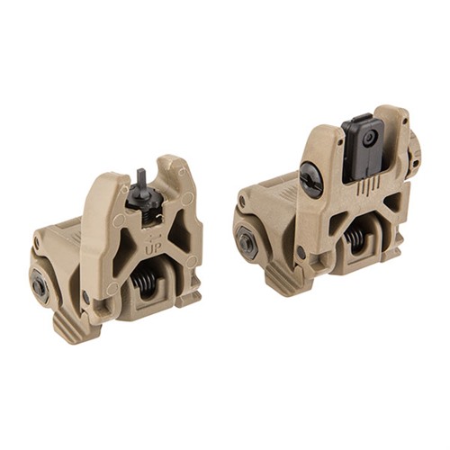 Låg profil, monterade på flattop, polymer sevärdheter distribuera direkt med ett finger för att tillhandahålla backup observation om en primär optik misslyckas. Strömlinjeformad konturer menar det finns inget att fastna på borsten, sling eller andra redskap när de viks. Fjäderbelastade ambidextrous frigöringsmekanism kan du träffa räfflad fliken på vardera sidan av synen att distribuera, och låsa den på plats. Slå samma flikar tillbaka synen när du är klar. Använder mindre än 1" av MIL-STD-1913 Picatinny mottagaren järnväg utrymme och lås säkert på plats med den medföljande stål crossbolt. Ger samma höjd över bar som standard A2 järn sevärdheter. Sido-Justerbar bakre sikte har två öppningar: en stor,. 185" peep och. 070" peep. För AR-typ gevär och karbiner, passar någon vapen med Picatinny räls. Främre sikte måste monteras på en railed forend på samma plan som mottagaren järnväg att bevittna korrekt med bakre sikte. Inte kompatibel med rasade gas block eller MOE handguard.Levernastid ca. 14-21 dagar.