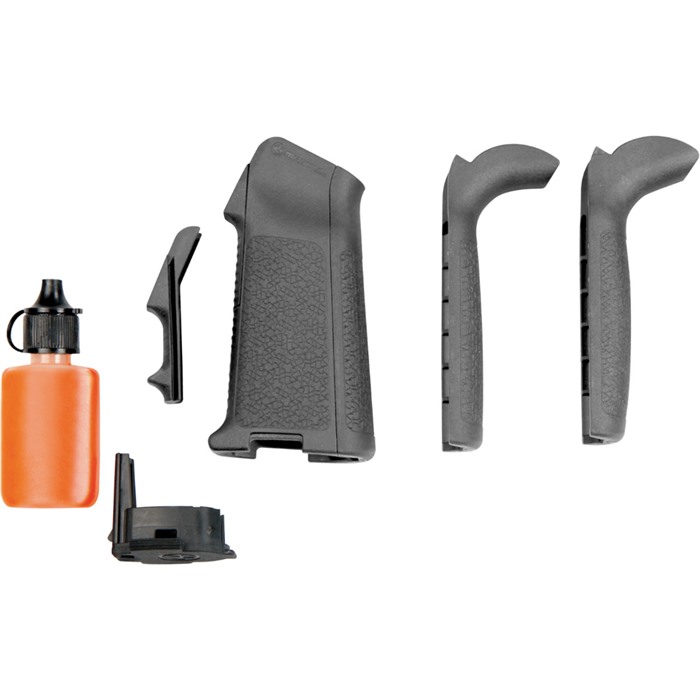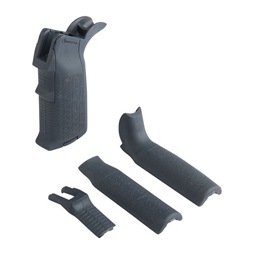 Mission Adaptable (MIAD) modular grip system with interchangeable inserts lets you find the grip configuration that fits your hand size and mission requirements. All models come with main grip body and detachable rubber core that holds a ½ oz. lubrication bottle in the cap. Additional cores for storing batteries and other items are available separately. Front- and backstrap inserts slide on easily, yet snap firmly into place and require no glue or screws to stay put. Comes with one straight and two different beavertail backstrap inserts, plus one straight and one finger-ledge front strap insert. Reinforced molded polymer construction. NOTE: The TYPE 1 Kit fits all AR15/M4's as well as many 7.62x51 variants such as the Aero Precision M5 308, CMMG MK3, CORE Rifle Systems CORE30, HK 417/MR762A1, LWRCI REPR, Mega Arms MATEN, POF P-308, Ruger SR-762, and SIG716.