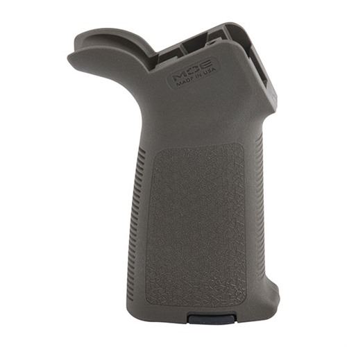 Magpul Original Equipment (MOE) grepp är ett hållbart, ekonomiskt och lättinstallat ersättningsgrepp för fabriks pistolgrepp som ger skytten ett fast och säkert grepp. Greppet är tillverkat av ett styvt, fullt stödd enstycksdesign i samma förstärkta, högimpaktpolymer som MIAD-greppet, med krackelerad textur på sidorna och djupa horisontella spår på fram- och bakstycket.