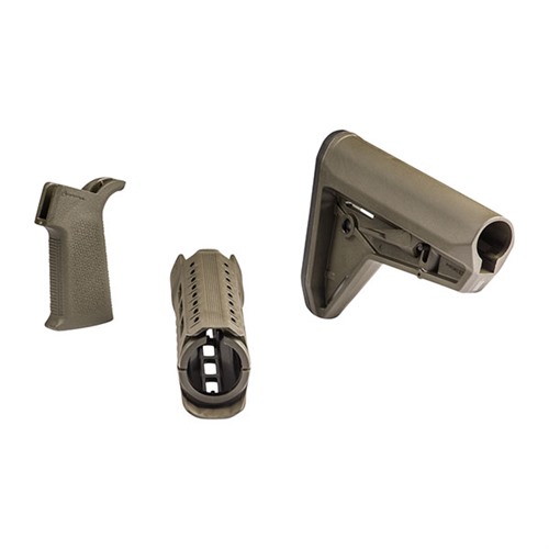 Upgrade your AR-15 rifle with this MOE-SL furniture set by Magpul. The MOE SL Stock – Mil-Spec Model is a drop-in replacement buttstock for AR-15/M4 carbines using mil-spec or commercial sized receiver extension tubes. Designed for the modern battlefield, the sleek profile, dual-side release latches, rolled toe, and angled rubber butt-pad is optimized for use with body armor or modular gear and provides for efficient shoulder transitions. The MOE SL Hand Guard for AR-15/M4 firearms with carbine-length gas system and A2 front sight provides modular flexibility with M-LOK accessory slots in a lightweight, sleek, cost effective design. Similar to the MOE-K2, the MOE SL Grip (Magpul Original Equipment Slim Line) is a drop-in upgrade for AR-15/M4 pistol grips with a more vertical grip angle optimized for short LOP weapons that bring the primary hand in closer to the shooter’s body. With an aggressive new texture for positive weapon control along with excellent ergonomics, the SL Grip provides a slightly smaller size and slimline feel. All mounting hardware included. Must be used with the triangular A2 front sight assembly; other gas blocks are not compatible.