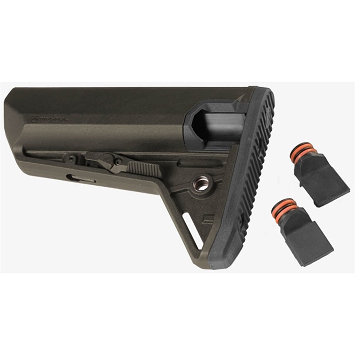 The storage-capable version of the flagship Magpul MOE SL™ carbine stock, the MOE SL-S (Storage) Stock is a direct replacement buttstock for AR15/M4 carbines. The sleek profile, dual-side release latches, and waterproof battery tubes make it the slimmest storage tube stock available. The SL-S provides an enhanced cheek weld and true, O-ring sealed, 10m waterproof battery storage, but fits it into the narrowest package possible to allow a more upright head position and minimize bulk. A rolled toe and angled rubber butt-pad are optimized for use with body armor, and an ambidextrous QD sling swivel socket is included. A unique leaf-spring tension system provides a solid fit on mil-spec receiver extensions, with slightly less friction than the original SL.