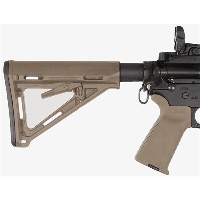 Magpul Original Equipment (MOE) karbin kolv erbjuder kvalitet, hållbarhet och ergonomiska fördelar från Magpuls CTR kolv i ett robust och ekonomiskt paket. Den starka A-ramdesignen är lätt och bekväm, men ger operatören gott om stöd.
