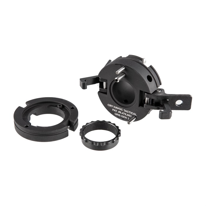 The Cry Havoc Tactical QRB (Quick Release Barrel) 2 Pin Upper Receiver Takedown Kit for AR-15 style rifles or pistols. While the QRB was primarily designed for the civilian market, non-civilian applications range from the Air Force using the QRB on the Air Crew Survival Weapon (GAU-5A) for ALL Fighters and Bombers, Motorcycle Police who did not have room for a standard AR-15/M4, to Operators in areas where an exposed AR-15/M4 might bring unwanted attention. In these and other cases, where there is a need for an AR-15/M4, the QRB now makes it possible to fit a rifle into a tight space but still have a usable barrel length for increased velocity. Assemble and Fire in seconds, even in low light. Able to KEEP strong hand on grip - Nothing to Depress or twist with strong hand. Use gross motor skills to assemble due to two-piece gas system. No lining up tiny gas access hole with gas tube first Able to use a wide range of Free Float Hand Guards for the attachment of Back-up Iron Sights and accessories. Super-fast barrel and upper cleaning. The QRB can retain POA/POI as the barrel still ""head-spaces"" off the stock positions (our tests have shown accuracy retained to less than 1 MOA of original rifle setup). With the purchase of an additional Barrel Lock Plate, switching to a different barrel length or caliber, like the 300 Blackout, takes just seconds. Proudly made in the USA The QRB Kit can only be used on Barrels with a maximum outside diameter of 0.985"" and Free Float Hand Guards with a maximum width of 2.0"" Also the QRB will add 1.5"" to the length of your free-floating hand guard. To purchase the proper kit simply selection the gas tube option that matches up with your barrels gas system length. A kit designed for pistol caliber AR’s that does not include a gas tube is available as well. Includes Barrel Plate, Receiver Plate, Star Nut, and Receiver Plate alignment Pin.