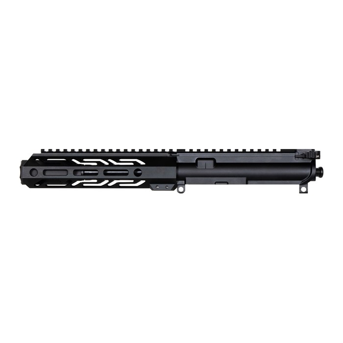 The Stern Defense SD Mod 5 9mm Upper Receivers are unique with handguards that extend beyond the end of the barrels. The 8.5” barreled upper has a 10” M-LOK free float handguard, and the 6” barreled upper has an 8” M-LOK free float handguard. To bring the muzzle out beyond the end of the handguard both uppers have SD HBC 9MM Blast Can installed. Both barrels have a 1-10 rate of twist, ½-36 muzzle thread pitch, and a Melonite finish. 8.5” or 6” barrels M-LOK Free Float handguard Complete assembly with 9mm bolt and charging handle ½-36 muzzle thread pitch SD BU9 9mm Bolt Included in the upper receiver is charging handle and the Stern Defense 9mm Bolt which is compatible with both Glock and Colt SMG magazines, has a Mag-Phosphate finish, and is works in conjunction with the Law Tactical Folding Adapter. The Stern Defense SD Mod 5 9mm Upper Receiver is made in the U.S.A. All NFA rules apply.