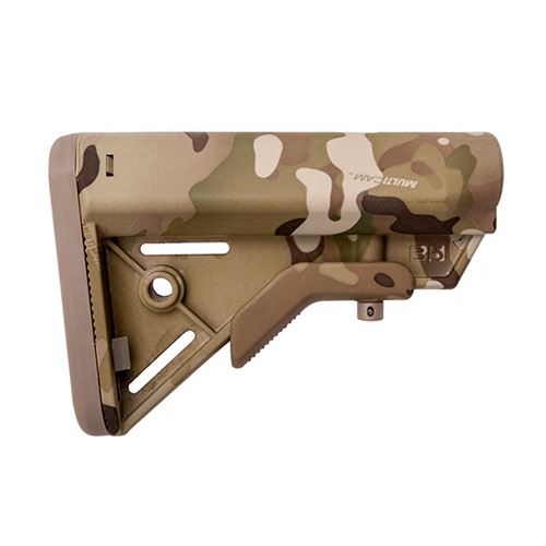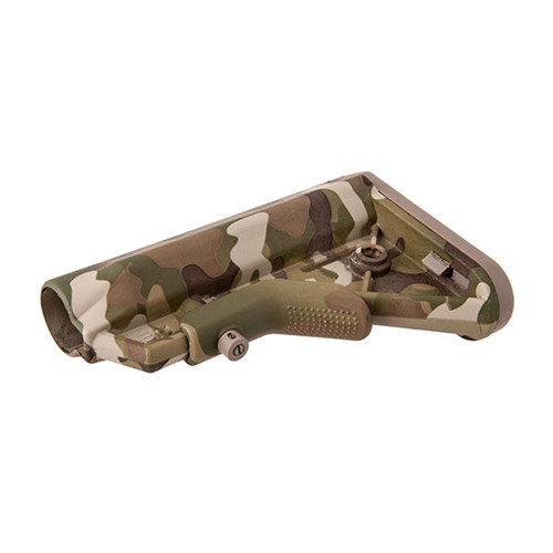 Denna förstärkta polymerstock används för närvarande av den amerikanska militären och passar M4-typens mottagarextensioner, samt erbjuder ett förbättrat kindstöd utformat för ökad komfort och konsekvens. De strömlinjeformade konturerna motverkar att fastna i kläder, utrustning eller vegetation för att underlätta säker och diskret användning.