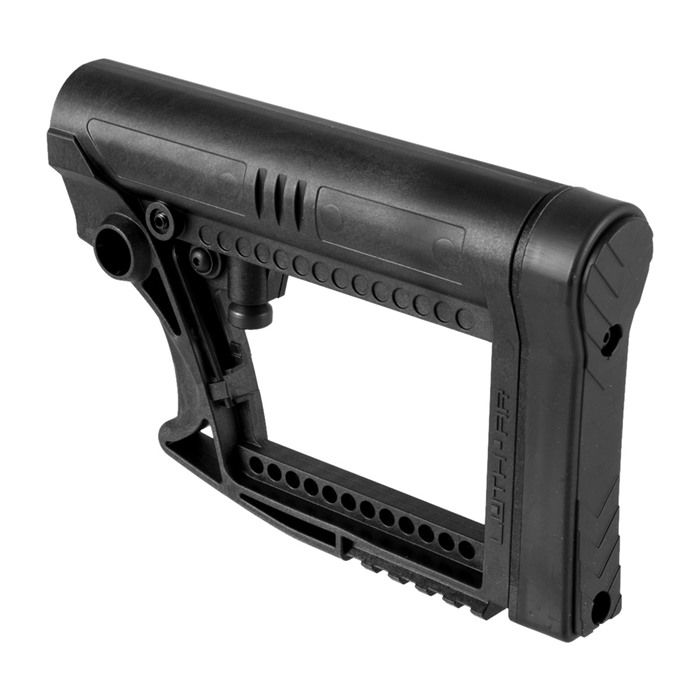 The Luth-AR “Skullaton” is the ideal buttstock assembly for your favorite carbine rifle. This buttstock is comfortable and lightweight, while remaining aesthetically pleasing! The “Skullaton” is designed to fit both commercial and mil-tech buffer tubes and works with all .223 and most .308 carbine style rifles. Features a bottom picatinny rail for additional accessories Flat set screw allows you to lock your favorite position in while eliminating any rattle Comes with a black medium soft rubber butt plate Uses 4 positions out of a 6 position stock NOT interchangeable with A2 standard buffer tube If you’re looking for a lightweight polymer skeleton stock, the carbine Skullaton stock from Luth-AR is a great option!