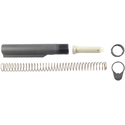 Convenient kit contains all the components needed to mount the buttstock of your choice on an AR-15 rifle or carbine. Perfect for stock conversions such as altering a rifle to accept a collapsible carbine stock. All parts are manufactured from the highest quality materials and held to strict dimensional tolerances for proper fit and function. Commercial carbine kit comes with 1.168" O.D., six-position receiver extension for use with commercial or “universal” buttstocks. Mil-Spec kit has a 1.148” O.D., six-position receiver extension for correct fit of military M4 carbine buttstocks. M4 buttstocks and clones will not fit Commercial tubes.