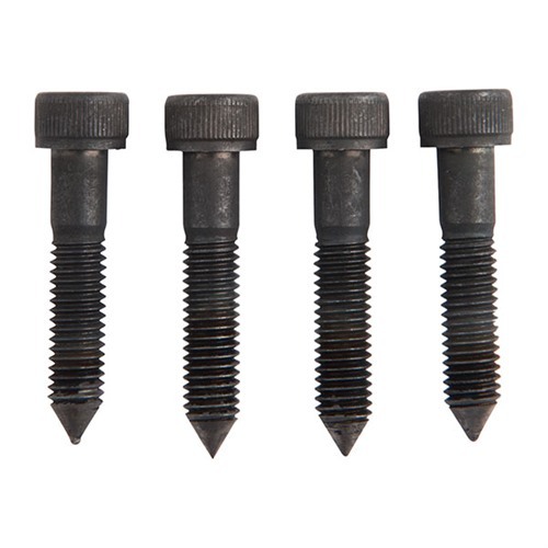 Verktyget håller bäraren säkert och positionerar nyckeln så att den kan dimples på rätt platser genom att dra åt de fyra hexskruvarna på verktyget. En ytterligare behållningsskruv på toppen av verktyget förhindrar att bäraren rör sig. Spetsen på denna skruv är maskinbearbetad platt för att säkerställa att den applicerar jämn behållande kraft och inte skadar bäraren. Alla skruvspetsar är härdade till Rc 58-62 för hållbarhet; dock kan ibland skruvar gå sönder, så vi erbjuder ett 4-pack av ersättningsskruvar.