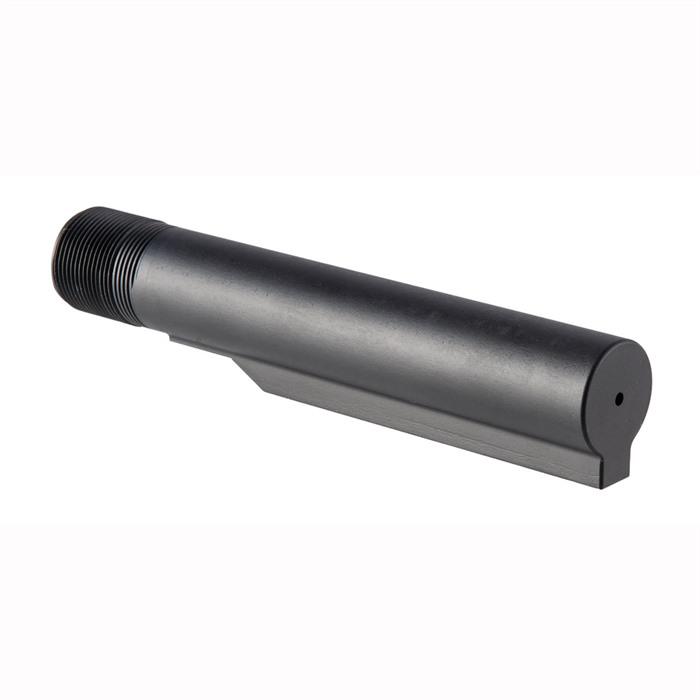 Brownells AR-15 Mil-spec receiver 6 position extension tube has the correct 1.148" outside diameter to ensure proper fit of adjustable mil-spec carbine stock. Allows you to install a mil-spec stock on a commercial carbine, convert a rifle with a fixed A2 style stock to an adjustable M4 stock, or complete a custom build. Six machined notches on the underside prevent the stock locking pin from slipping, yet still offer outstanding ease and flexibility in setting the buttstock length. Precision machined from strong, lightweight 7075 aluminum, then hardcoat anodized with a hard, wear-resistant matte black finish.