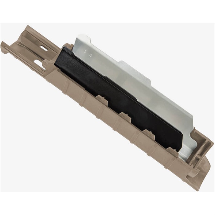 Det integrerade nittade aluminium värmeskyddet ger extra skydd mot pipans värme. Det mångsidiga handskyddet har M-LOK spår vid två, sex och tio klockan positioner, vilket möjliggör montering av MIL-STD-1913 Picatinny-skenor eller andra direktmonterade tillbehör.