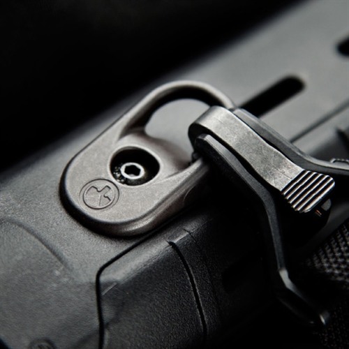 - Fäst din Magpul MS2, MS3 eller liknande clipon sling på slingloopen.
