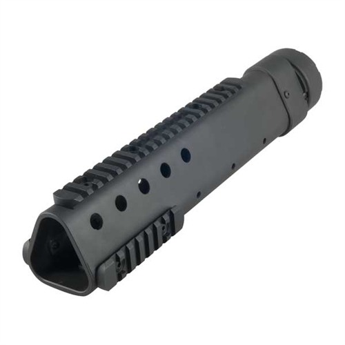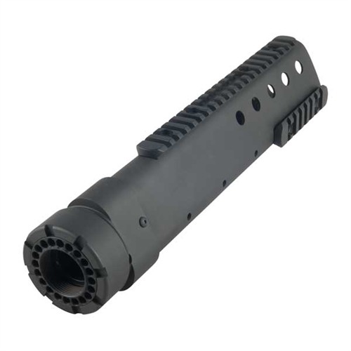 Extra utrymme inuti, högst upp, gör den kompatibel med de flesta gastryckssystem och konverteringar. En 8½" toppskena plus tre användarkonfigurerbara 3½" sidor och bottenrails ger gott om utrymme för montering av bipod, ljus och andra tillbehör. Kitet inkluderar handskyddet, barrel nut, bolt-on tillbehörsskenor och kompletta installationsanvisningar.