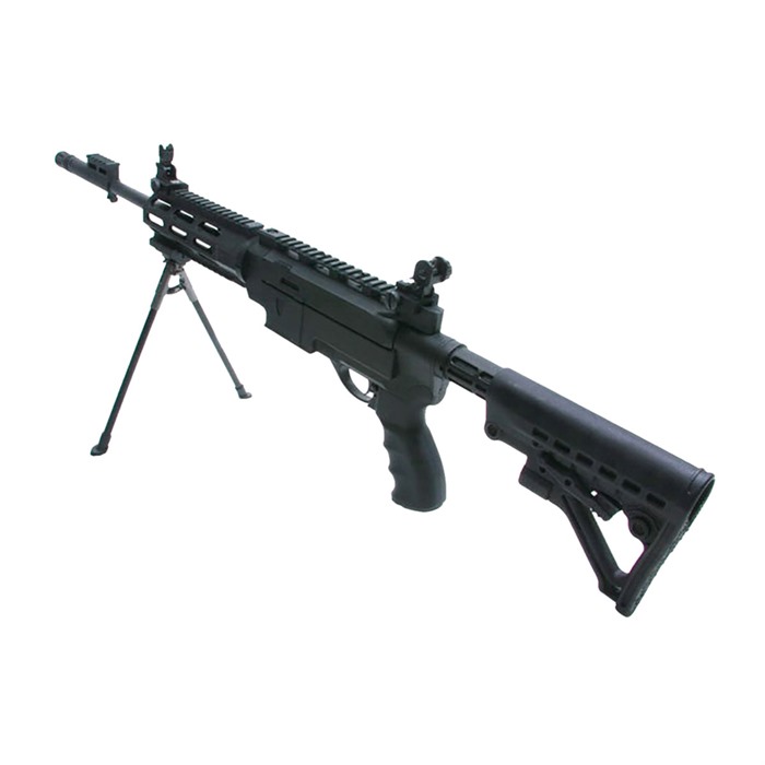 The Archangel® AA597R conversion stock will make y Remington® Model 597™ mimic the look and feel of an M-4, flat-top carbine. This super tough, and feature packed stock includes an adjustable six position buttstock (10” - 14” length of pull) with steel QD hardpoints molded in, ergonomic finger grooved pistol grip with a locking storage compartment, a full length Picatinny top rail, lower forend Picatinny rail, and hidden stock extension storage compartment. Constructed of legendary high strength, carbon fiber and glass reinforced black polymer, the AA597R will withstand a lifetime of hard use and is covered by a manufacturers lifetime warranty against defects in materials and workmanship. Will fit and free-float all standard 597® OEM barrels and bull barrels up to .920 in diameter. Includes a polymer muzzle device that facilitates attachment of gas-block height AR-15 front sights directly to OEM barrels* (sights not included). *Some models do not posses a front sight from the factory. These barrels lack the threaded screw hole necessary for the muzzle device attachment. 2.2 lbs. Rubber 1” extended recoil pad (AA117) available separately. Made in USA Fits all Remington© Model 597™ rim fire calibers Six (6) position buttstock adjustable for 10" - 14" Full length top Picatinny Rail Drop in fit* Two (2) secure storage compartments Free floats any barrel cont including bull barrels up to .920" diameter Constructed of legendary high strength, carbon fiber and glass reinforced black polymer Makes y Remington© Model 597™ mimic the look and feel of a M-4 carbine Muzzle attachment allows attachment of gas block height sights on OEM barrels** (sights not included) Forend sides slotted for addition of optional Picatinny rails Includes a black high strength polymer display bayonet F (4) quick detach hard points Ergonomic pistol grip with finger grooves Recoil pad available for purchase separately (AA117) Overall Length: 24.4375" Weight: 2.2 pounds Lifetime Warranty*** Made in USA