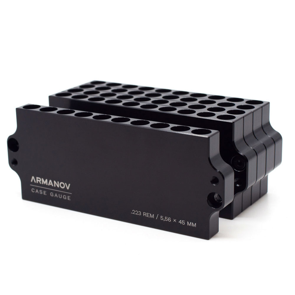 ARMANOV Case Gauge 10 rnd Stackable är en högkvalitativ mätanordning för .223 REM / 5,56 x 45 mm ammunition eller .300 AAC Blackout, tillverkad enligt strikta toleranser enligt SAAMI-specifikationer.