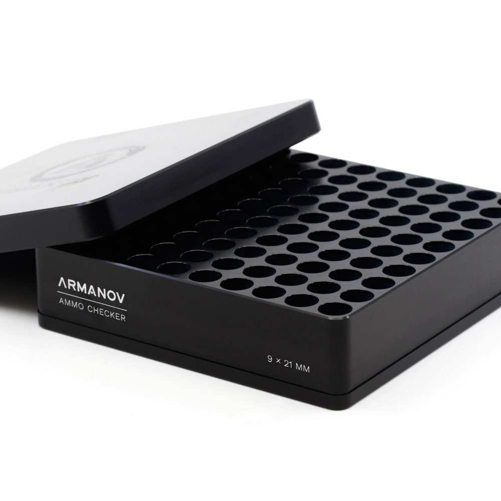 Många sportskyttar återladdar sin ammunition, och att kontrollera sin ammunition för konsekvens är ett måste, särskilt för tävlingar. Armanov Ammokontroll är tillverkad av aluminium av högsta kvalitet, med fickor som är färdiga med en speciell reamer som är gjord för att uppfylla strikta CIP-toleranser. Höjden på Gauge Box är noggrant maskinbearbetad till den maximala totallängden för respektive kaliber, vilket hjälper till att hitta patroner med otillräckligt insatta kulor.