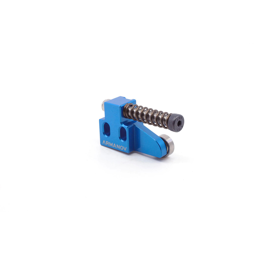 Armanov Spring Loaded Index Bearing Cam Block för Dillon Precision XL750 ersätter den stålkonstruktion som orsakar friktion och drag. Den fjäderbelastade stödpinnen avlastar en del av belastningen från Primer Punch Spring och ger en smidigare rotation av hylsplattan, vilket förhindrar att pulvret spills ut från hylsan.