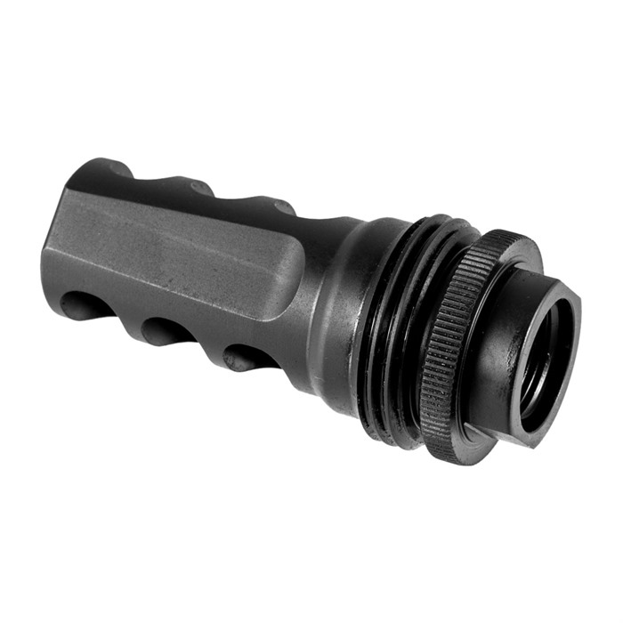 SilencerCo’s Hybrid ASR muzzle brake makes changing suppressors a simple, one-handed, on-and-off operation. This 3-port muzzle brake works with SilencerCo sound suppressors that use the Active Spring Retention (ASR) mounting system, including Specwar, Saker, Omega, Hybrid, and Harvester Big Bore ASR silencers. .46" opening accommodates a variety of calibers Available with 5/8"-32 and 5/8"-36 thread pitches Stainless steel construction resists blast erosion Tough black nitride finish Comes with shims for easy installation When used alone, without a silencer attached, the SilencerCo Hybrid ASR muzzle brake effectively reduces felt recoil and muzzle climb to help you stay on target even during unsuppressed fire.