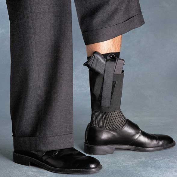 - Innan du rör dig, kontrollera att ankle bandet är säkert och att vapnet är korrekt säkrat i holstret.