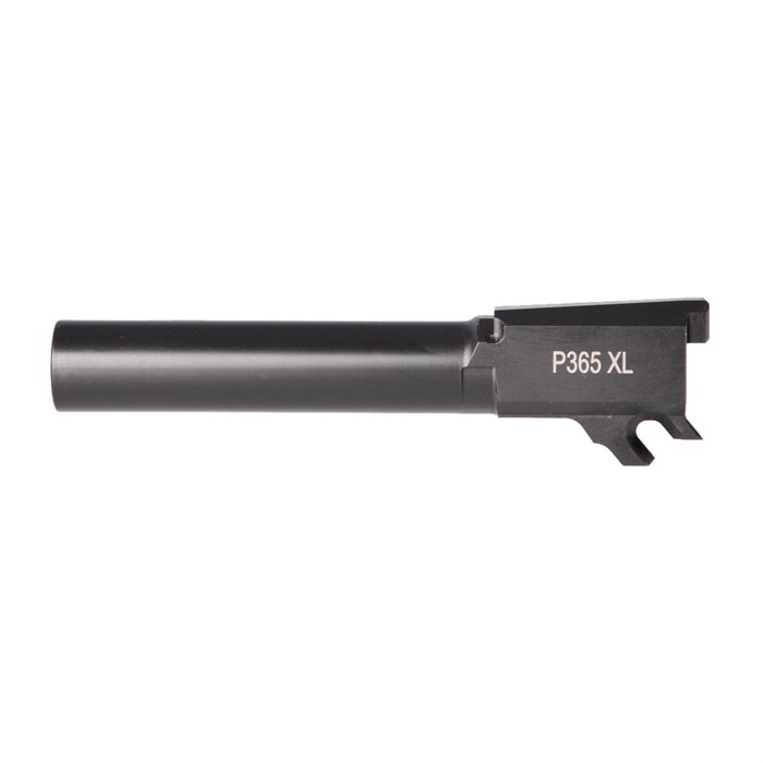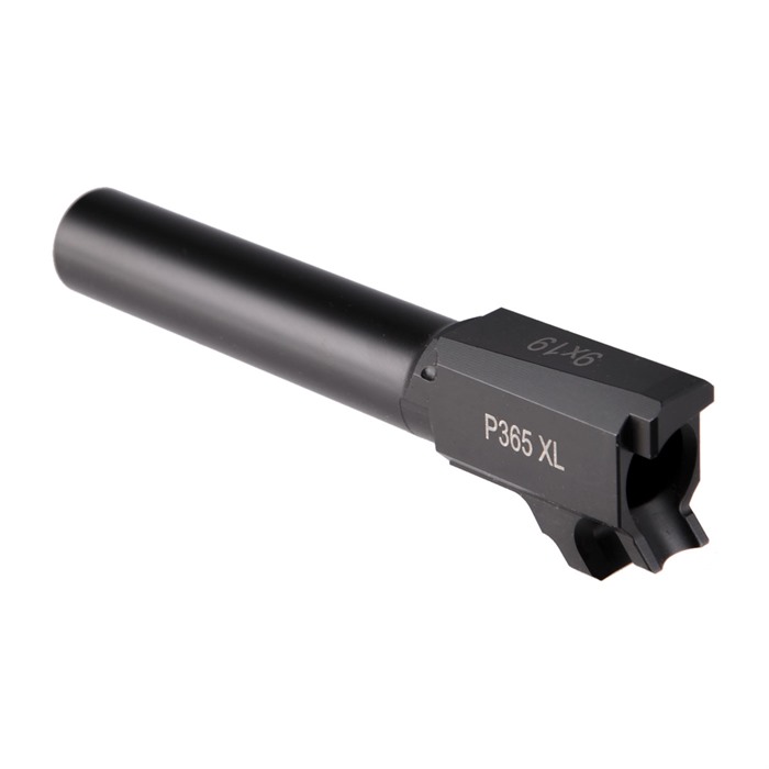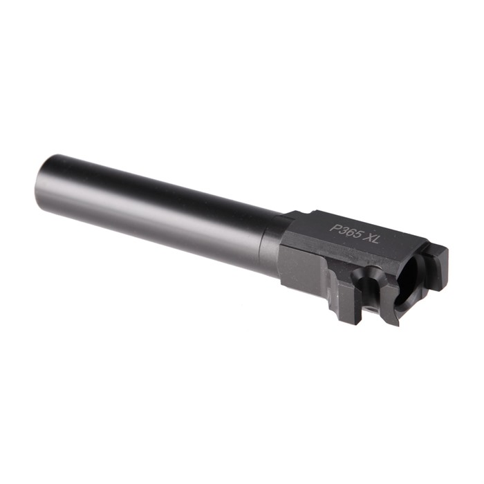 A Premium Barrel To Maximize the Performance of Your Sig P365XL The Sig P365XL is an outstanding EDC / CCW / personal defense pistol. It's not designed to punch the tightest groups on paper targets - but it has a lot more accuracy potential than folks may think. Drop in our Match-Grade Barrel for the Sig P365XL and find out just how much more accuracy your P365XL is ready to give you! What makes our Sig P365XL barrel match-grade is the way it's machined from hardened 416R stainless steel to precise dimensions for a tight lockup and long service life. Installation should be a straight drop-in deal on most guns. The extra-hard Black Nitride finish resists surface wear and stops in its tracks whatever corrosion might try to challenge the stainless steel. Ahead of the 9mm Luger (9x19mm) chamber is a button-rifled bore with standard, 1-10"" right-hand, 6-groove rifling. Fits Sig P365XL Only 416R Stainless Steel Black Nitride Finish Button-Rifled, 1-10" Twist Threaded Model has 1/2"-28 tpi Our Match-Grade Barrel for the Sig P365 is available with your choice of a Plain muzzle or Threaded (1/2"-28 tpi) to enable installation of a compensator or sound suppressor. Both are laser engraved with the chambering and the Sig model they fit.