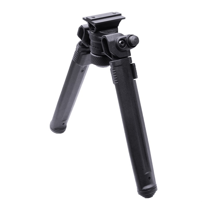 The Magpul Bipod for A.R.M.S.® 17S Style mounts offers serious strength and versatility at a price that provides unmatched value. Magpul’s lightweight Mil-Spec hard anodized 6061 T-6 aluminum and injection-molded polymer bipod brings innovation in ergonomics, functionality, strength and value together. Its low-profile design conceals its internal mechanisms and hardware, smoothly brushing off snags and bumps. Optimized for rapid one-handed adjustments, the bipod quickly and quietly transitions between user configurations. In the shooting position, it is easily loaded with stabilizing forward tension without fear of failure or warping. Its aluminum and stainless steel components, along with its injection-molded reinforced polymer, ensure years of dependable performance and reliability, all while shaving weight. It's extremely light weight, at just over 11 oz. Leg extensions slide and lock securely with the push of a button on any of the seven half-inch spaced locking detents. The legs extend 3.5 inches, from 6.8” to 10.3”. An industry-exclusive 50° of total tilt and 40° of total pan are controlled by a glove-friendly knurled tool-less bipod locking knob located between the extended legs. It also has the exclusive ability to lock pan at 0° while maintaining full tilt functionality. Folded, the streamlined housing and legs fit neatly under the barrel and are just under 2.3” deep and 3.3” wide. Anodized surfaces and tight, precision tolerances mitigate squeaks and rattles. A soft rubber bipod locking knob cap is attached to the locking knob gives users a steady, non-marring forward rest while the bipod is folded. Additionally, its staggered soft rubber feet hold fast on a variety of shooting surfaces and are easily removed with a roll pin punch. Should users choose to change feet, the Magpul Bipod’s legs accept most Atlas pattern bipod replaceable feet, except for the Atlas 5-H style. Made in the USA. FEATURES Designed for streamlined storage until deployment Folded, the sleek housing and legs fit neatly under the barrel and are just under 2.3” deep and 3.3” wide Leg extensions slide and lock securely with the push of a button and a tool-less knurled bipod locking knob allows easy adjustment between shots Legs extend from 6.8” to 10.3” with seven locking detents Spring-tensioned legs stow forward when not in use, and then quickly snap down and lock into place with one hand Legs accept most Atlas pattern bipod replaceable feet to best match the needs of your environment SPECS Attachment: A.R.M.S. 17S Style Materials: Steel, Mil-Spec hard anodized 6061 T-6 aluminum, polymer Height, max: 10.3"" Pan and Tilt: 50° tilt and 40° pan Weight: 11 oz.