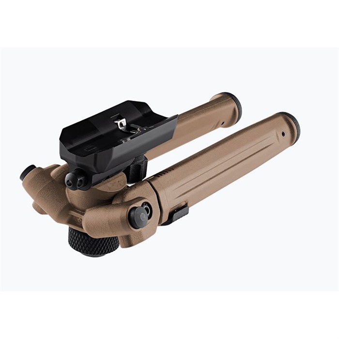 Dess låga profil döljer interna mekanismer och hårdvara, vilket gör den smidig att använda utan att fastna. Bipoden är optimerad för snabba justeringar med en hand, vilket möjliggör en snabb och tyst övergång mellan olika användarkonfigurationer. Den är designad för att fästa på den populära Uncle Mike's-stil sling swivel stud, och tack vare sitt snabba monteringssystem kan den fästas och lossas enkelt.