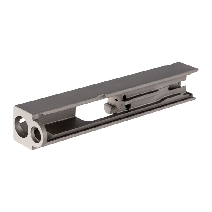 Utsidan är helt slät, så att du kan maskinbearbeta in exakt det serrationsmönster och andra funktioner som passar dina krav. Gå praktiskt eller dekorativt. Oavsett vilket, är det upp till dig. Den goda nyheten är att du inte behöver lägga tid på att maskinbearbeta siktsnitt eftersom fabriks bakre dovetail och främre sikthål redan finns. Avfasningen på slidens kanter har också redan gjorts.