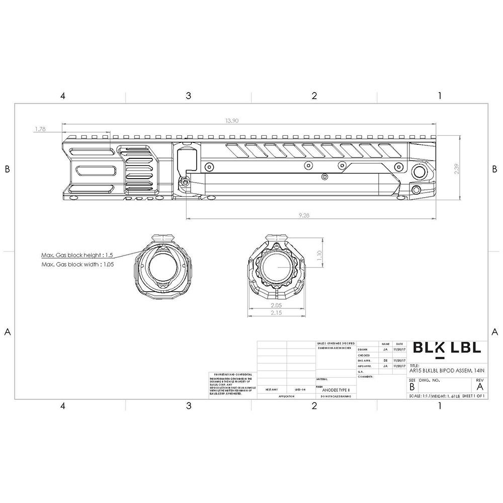 BLK LBL BIPOD AR-15 - Bipod - 14"