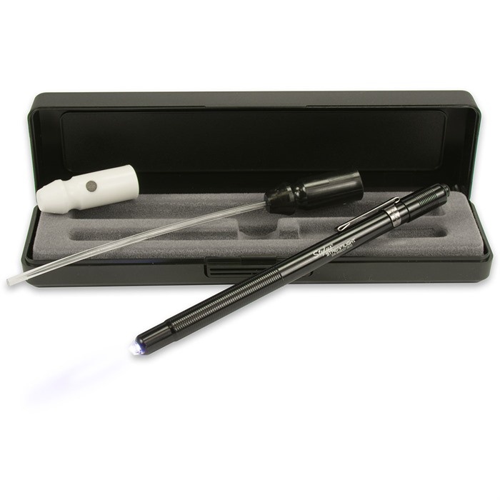 667739710008 Streamlight® Stylus 3, LED-lampa, med en Delrin® diffusor, ger ett strålande, vitt ljus som verkligen belyser ditt gevär, hagelgevär eller pistolborr. Låter dig tydligt se eventuella beläggningar eller gropar inom borren och halsen. En kraftfull magnet i diffusorn håller lampan i ett gevärs mottagare för att ge dig handsfree visning. Inkluderar en flexibel, fem tum lång, fiberoptisk adapter som låter dig titta djupt in i mekanismer och andra svåråtkomliga ställen. Maskinbearbetad aluminiumkonstruktion; tvåvägsbrytare, vrid-på eller tryckknapp.Levernastid ca. 14-21 dagar.