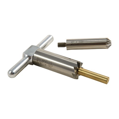 050806022676 Setet inkluderar: en, 90° ansiktsskärverktyg för att kvadra en mynning efter förkortning, eller reparera skador; en, 45° avfasningsskärare för att bryta kanterna på räfflingen för en ren projektilutgång eller avfasning av revolvercylinder för snabba omladdningar; plus ett handtag som passar antingen skärare och en messingborepilot. Utbytbar pilot håller skärverktyget korrekt justerat. Köp extra piloter för att använda en skärare för många olika kalibrar. Piloter för andra kalibrar finns att köpa separat.Restorder. Skickas när den finns i lager. Leveranstid ca 4-12 veckor från centrallagret.