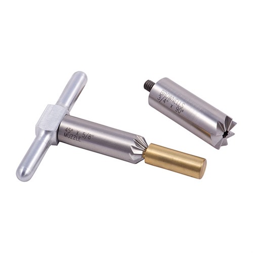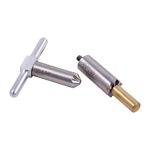 050806012813 Setet inkluderar: en, 90° ansiktsskärverktyg för att kvadra en mynning efter förkortning, eller reparera skador; en, 45° avfasningsskärare för att bryta kanterna på räfflingen för en ren projektilutgång eller avfasning av revolvercylinder för snabba omladdningar; plus ett handtag som passar antingen skärare och en messingborepilot. Utbytbar pilot håller skärverktyget korrekt justerat. Köp extra piloter för att använda en skärare för många olika kalibrar. Piloter för andra kalibrar finns att köpa separat.Restorder. Skickas när den finns i lager. Leveranstid ca 4-12 veckor från centrallagret.