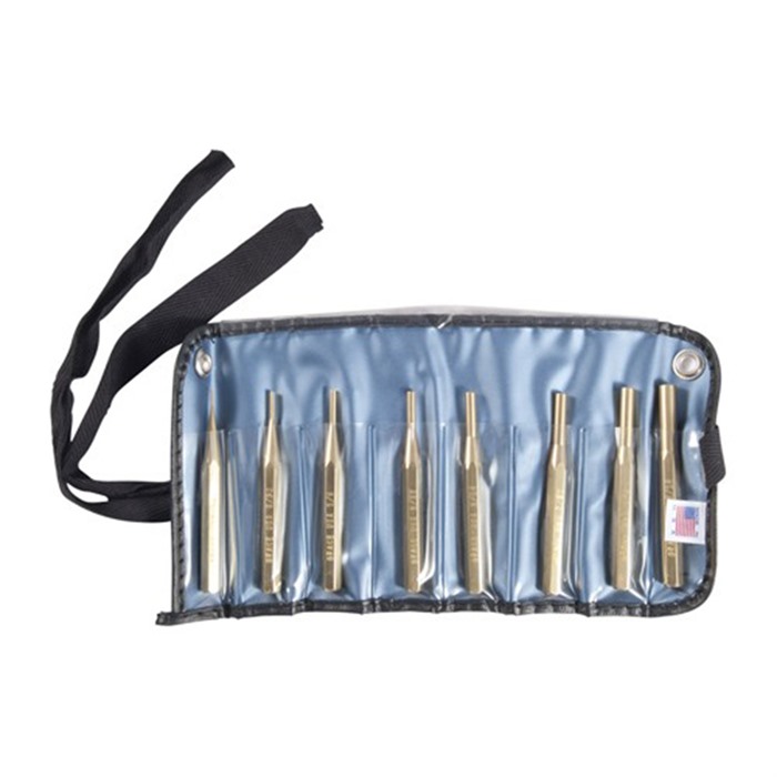 SPECS: Brass, 5⁄16" (7.9mm) hex stock. Punch Set - 8 punches: 1⁄16", 3⁄32", 1⁄8", 5⁄32", 3⁄16", 7⁄32", ¼”, 5⁄16" dia.