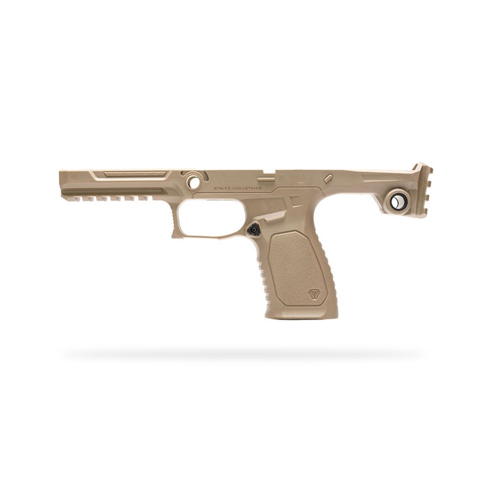 The Strike Modular Chassis (SMC) - BRAVO for SIG Sauer P320 by Strike Industries is a new lite version of the MOST MODULAR P320 (SMC Alpha) Chassis in the WORLD at a fraction of the Alpha's price. Customer feedback was heavily weighed and taken into consideration when Strike Industries developed this chassis so when they say the Bravo was made with the user in mind, they mean it. The new SMC Bravo is made of Polymer Extreme™ which is durable and lightweight — intended to receive P320 FCU's and slides to complete the entire ensemble. This time around users can fully utilize their P320 optics-ready slides to effortlessly install their red dot sights! In terms of upgraded features in the Bravo, the ergonomics have improved with a textured grip which now includes a built-in flared magwell to assist with quick and smooth reloads. Strike Industries optional Ambidextrous Side Charging Handle with a Slide Cover Mount for the P320 is also compatible so each Bravo user can decide which side they want to rack the slide with. This chassis also more universally accepting of many different types of P320 magazines. Users will enjoy the integrated gas pedal above the Picatinny rail to help fight muzzle flip, allowing for faster follow-up shots. Derived from the SMC Alpha, the Bravo remains consistent as it comes with the SMC Rear Module Backstrap molded onto the new chassis as one solid piece. It offers users rear ambidextrous QD sockets and a Picatinny rail mount, perfect for attaching various accessories like their Strike Dual Folding Stock/Brace. The ambi QD sockets in the rear can be used with slings and can even have a lanyard or paracord strung through it (in case you want to hang this up somewhere quickly accessible). Whether you're looking to scratch that sci-fi itch, if you're a Sig fan, or just want a PDW option, the Bravo is a ton of fun and lives up to its hype. Get your SMC BRAVO today before they sell out! FEATURES Ambi QD sockets at the rear w/ loop-thru design so its possible to loop a lanyard or paracord. Built-in magwell for better magazine feeding. Flat magazine hole opening; this make the grip module able to use more different types of P320 magazines. Works with Ambidextrous Side Charging Handle with Slide Cover Mount. Extended picatinny rail located at front bottom of chassis and on Rear Module Backstrap for accessories. Compatible with optional Spare Magazine Holder for SIG SAUER P320 with SI Modular Magazine Release. SMC Bravo for SIG SAUER P320 uses SIG SAUER P320 OEM fitment takedown lever and P320 magazine release, SI Modular Magazine Release is pre-assembled and included. COMPATIBILITY: Calibers: 9mm/.357SIG/.40S&W FCU: All SIG SAUER P320 FCUs which include XSeries as well as M17/M18 with complete function of the manual safety. For SMC use with M17/M18 manual safeties, the notch on the chassis is visible and outlined as a guide for the modification needed to be performed for the manual safeties to be usable. Triggers: Strike Industries only guarantee proper fit and function with SIG SAUER OEM triggers. Strike Industries cannot guarantee safety and function on aftermarket triggers and components. The SMC is made to fit the OEM standards of the SIG SAUER FCU. Slide Lengths: The SMC will work with all P320 slides and barrel lengths but is best matched on the BRAVO for SIG SAUER P320 (Full-Size Length Slides) with 4.7"" barrels or SIG SAUER P320 (Carry Size Length Slides) with 3.9"" threaded barrels combined with a compensator. While the subcompact 3.6"" barrel/slides will also work with the Bravo Strike Industries do not recommend this as the frame would be longer than your slide even if it had a compensator. If you decide to use a slide shorter than the Full-Size length they highly recommend purchasing the Strike SMC Blast Shield to protect your support hand's thumb. Magazine Compatibility: P320 17-round, 18-round, 21-round and Full Size 10/17-round magazines Holsters: The SMC Bravo's general silhouette can fit in a variety of holsters, however, it depends on what accessories are installed (i.e. magholder, optic, light, charging handle) as kydex molds also vary between brands. NOT COMPATIBLE: 45ACP FCU/Calibers 10mm FCU/Calibers Compact 15 and 10-round magazines SMC Alpha frame mounted muzzle devices SMC Alpha Magwell WARNING: Be careful of thumb/hand placement near any moving parts on the Strike Module Chassis/grip module. Misuse or improper placement can cause disfigurement or death. Before every use, always check proper function and that all screws/hardware is secure. Maintain and check all screws/hardware and components regularly as preventative maintenance. Always have your weapon SAFE when not being fired. Always follow all firearms safety rules and never point your weapon at anything you are not willing to destroy. The user is responsible for the modification required to use the M17/M18 manual safeties. The Strike Modular Chassis (SMC) has a visible outline for the shape to fit the M17/M18 manual safeties. Strike Industries only recommends all work be done by a certified gunsmith. Be aware that once you remove material in the SMC chassis for the M17/M18 notch, you cannot go back and there will always be a notch for the manual safeties once the modification is done to the SMC chassis. DISCLAIMERS: Strike Industries are not lawyers and do not give any legal advice. Always be aware of federal, your state, and local laws. The Strike Modular Chassis (SMC) BRAVO for SIG SAUER P320 by Strike Industries is NOT A FIREARM. This is a grip module/chassis system made to work with SIG SAUER P320 FCU's and slides. Users will have to supply your own complete P320 slide w/ barrel, FCU, and magazine. The SMC BRAVO is not a serialized product. The Strike Mag Holder and Dual Folding Adapter are optional Strike Accessories that are compatible with the SMC BRAVO. “SIG SAUER” and ""P320"" are federally registered trademarks of SIG SAUER, Inc. and is one of many trademarks owned by SIG S