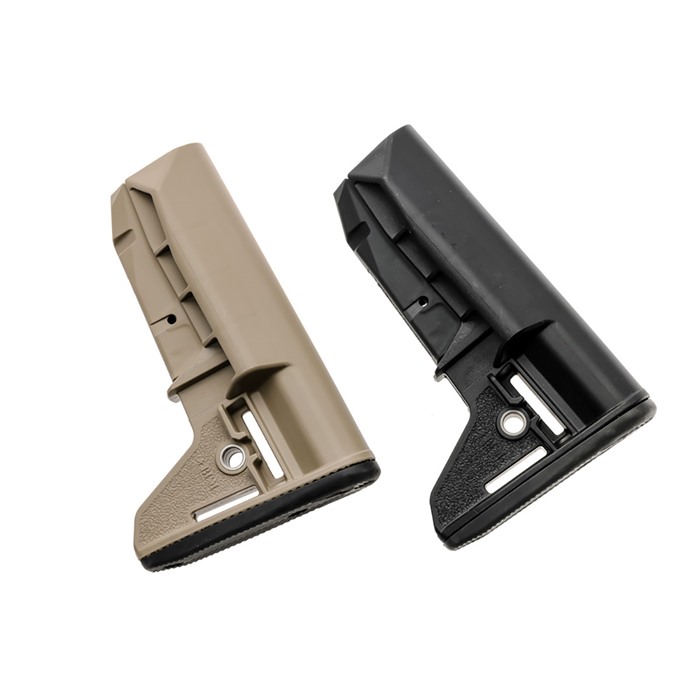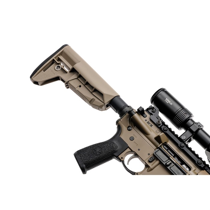 Tillverkad av amerikaner i Hartland, WI – BCM® Mod 2 stock är en förbättring av den grundläggande M4-tillbehöret med förbättrad ergonomi och hållbarhet. Den är omformad till en patenterad (United States Patent Number: D901616) semi-clubfoot design som passar på Mil-Spec karbin mottagare och är optimerad för mellanlånga mottagare (MK2, AR10, A5). Dessa förbättrade linjer förbättrar också skytte i liggande position utan att fastna, utan kanter som kan fånga eller trassla i remmar, antenner eller annan PPE.