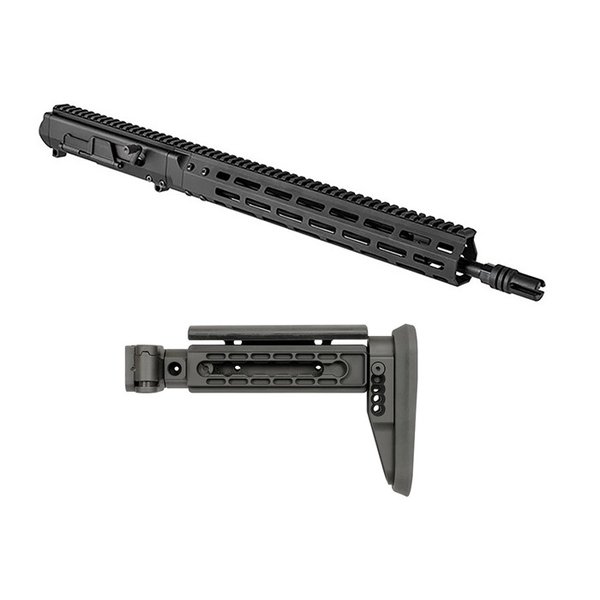 Den medföljande ALPHA Series Folding Stock är designad för att användas med gevär och är även kompatibel med Gear Head Works tailhook för armbröstanvändning. Den justerbara polymerkindstycket och butt pad ger ökad användbarhet med plattbärare eller tung utrustning.
