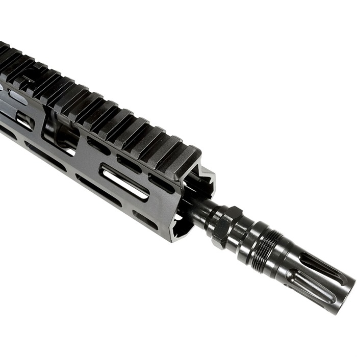 Denna överdel är kompatibel med Rearden Atlas, Plan B och andra monteringsstilar som använder .900 x 24 TPI monteringsgränssnitt. Den proprietära bromsen är fastsatt och svetsad för att göra pipan 16” OAL och är kompatibel med alla 0.900x24 TPI hub-monterade ljuddämpare som Rearden Atlas, Atlas-R, Atlas-XL, Q Plan-B (omega300), Diligent Defense ZILCH, ECCO Machine EMCherrybomb och fler.