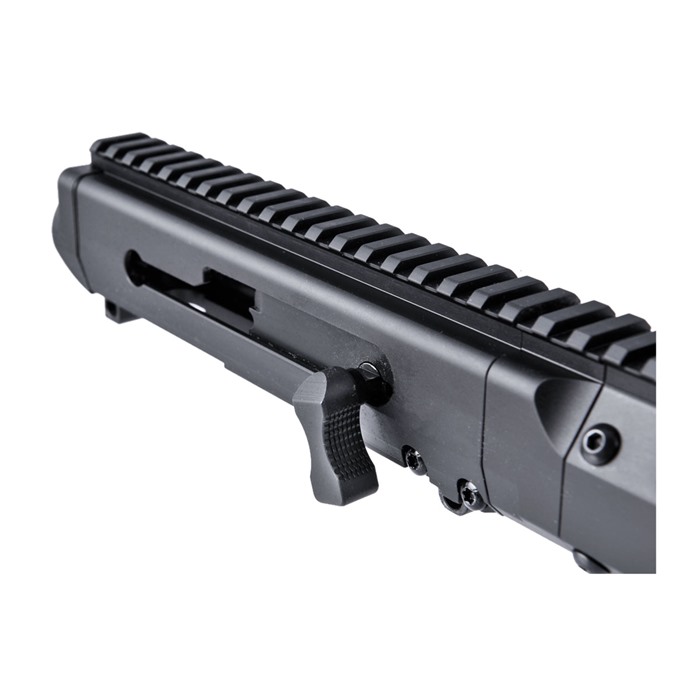 - Behåller den helt inneslutna återkommande massan för användning med bakre picatinny-skena eller hopfällbar kolv/stöd.