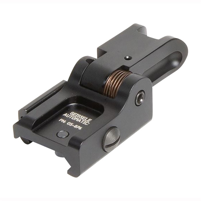 Whether running them as your primary aiming system or relying on them as a back-up in case your main optic goes down, the Geissele Folding Sights will give you the performance you need and expect from a product designed and manufactured from the ground up in our facility located in North Wales, PA. The Geissele Folding Sights are made from 6061-T6 aluminum and are Type 3 hard coat anodized to ensure extreme durability. For optimal aiming precision, our sights can be adjusted at ½” increments at 100 yards. The adjustments for the front and rear sights are captive to ensure that once sighted-in, there won’t be any adjustments not intended by the user. There are no buttons or mechanisms to accidentally bump that will activate or fold down your sights when you least expect it, simply move them up to lock into position, or apply sideward pressure to the vertical tower to lock them down. The peep aperture is .072” and the front post measures .080”.These sights are accurate enough for precision use during competition, and rugged enough for duty and personal defense use. HEIGHT (deployed, from top of pic rail): 1.47" HEIGHT (folded, from top of pic rail): 0.49" LENGTH: 2.33" WEIGHT: 1.33oz FRONT POST: .080"