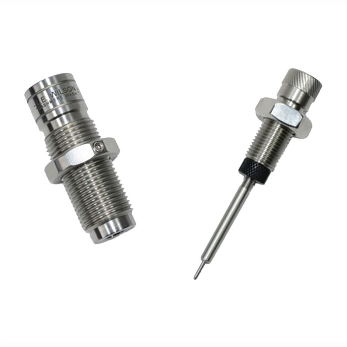 Wilson Bushing Type Full Length Sizing Die är en utmärkt lösning för att justera hylsans nackspänning samtidigt som du formar resten av hylskroppen. Denna die inkluderar en justerbar djup avtryckare och en extra avtryckarpunch. Observera att dessa dies inte innehåller en expander.
