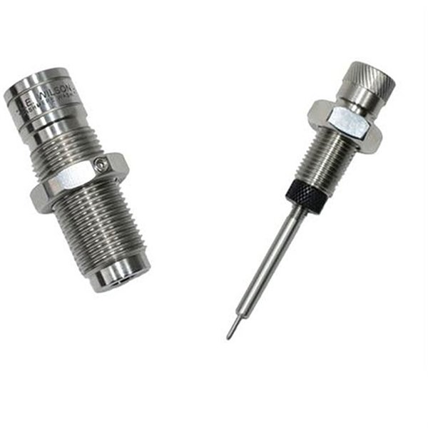 Wilson Bushing Type Full Length Sizing Die är en högkvalitativ verktyg som låter dig justera hylsans nackspänning samtidigt som du formar resten av hylskroppen. Denna die inkluderar en justerbar djup avtryckare för urtappning och en extra urtappningsslå för bekvämlighet.
