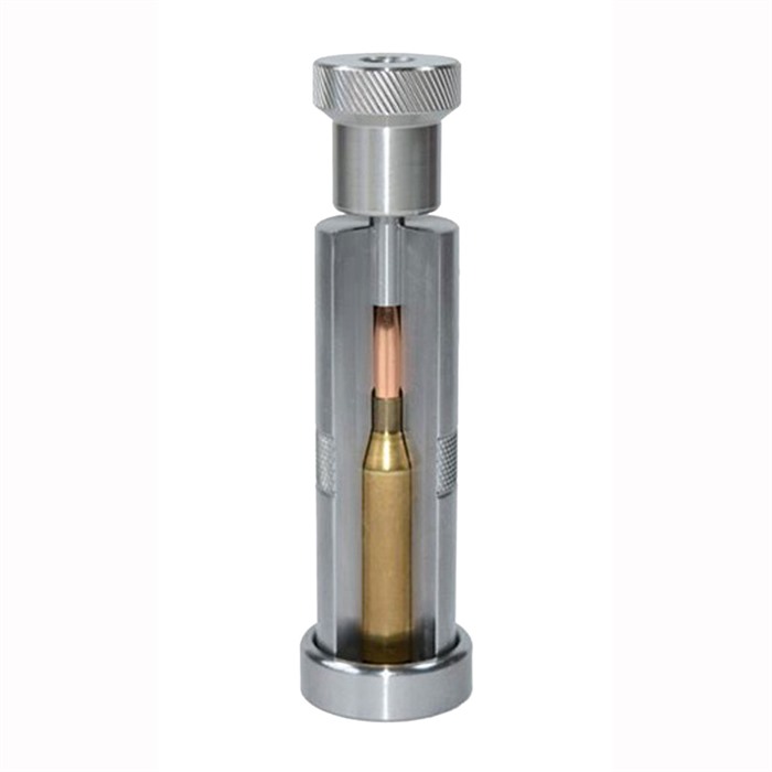 Wilson chamber type bullet seater är en favorit bland benchrest-skyttar. Denna typ av bullet seater kontrollerar både kulans och patronhylsans justering på ett positivt sätt.