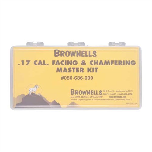 The Brownells Chamfering and Facing Combo Set is an essential tool kit for shooters and gunsmiths looking to enhance the functionality and aesthetics of firearm barrels. This combo set provides everything you need to create clean and precise chamfers and facings on the muzzle and chamber of your firearm barrels. KEY FEATURES Precision Tools: This set includes high-quality tools designed to provide precise and consistent results. You can achieve professional-grade chamfers and facings with ease. Versatility: The combo set is suitable for a wide range of firearms, making it a valuable addition to any gunsmith's toolkit. It is compatible with various barrel sizes and types. Improved Accuracy: By using the chamfering and facing tools, you can enhance the accuracy of your firearm by ensuring a uniform and square muzzle and chamber. Professional Finish: The tools in this set are designed to create clean and polished chamfers and facings, improving the overall look and functionality of your firearm. Durability: Brownells is known for producing high-quality gunsmithing tools, and this combo set is no exception. The tools are built to last and withstand heavy use. Whether you're a seasoned gunsmith or a firearm enthusiast looking to perform your own barrel work, the Brownells Chamfering and Facing Combo Set is a valuable investment. It allows you to achieve precise results, improve the accuracy of your firearm, and give it a professional finish. Please note that specific product details and features may vary, so it's a good idea to check Brownells' official website or contact their customer support for the most up-to-date and detailed information about this product. COMPONENTS FIVE COMPARTMENT BOX WITH FOAM 45/90 RIFLE MUZZLE REPLACEMENT HANDLE ½” DIAMETER 45 DEGREE .17 CALIBER CHAMFER TOOL 1” DIAMETER 90 DEGREE .17 CALIBER FACING CUTTER .165” DIAMETER PILOT FOR .17 REMINGTON ROUND .166” DIAMETER PILOT FOR .17 HORNADY RIMFIRE .167” DIAMETER PILOT .17 CALIBER RIFLE & HANDGUN